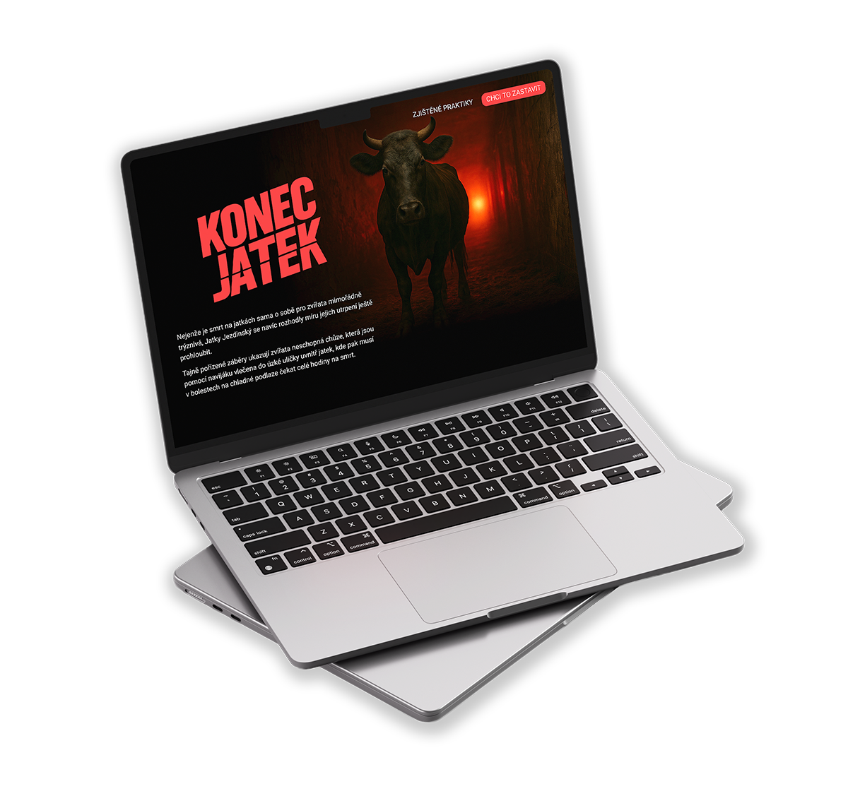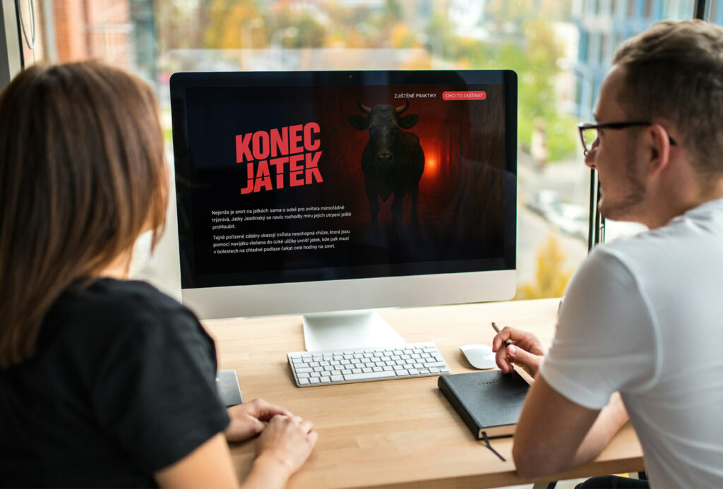 Přehledná, informačně strukturovaná platforma kombinující fakta, dokumentaci a jasně formulovanou výzvu. Vizuální jazyk je minimalistický a kontrastní – forma podporuje závažnost sdělení.